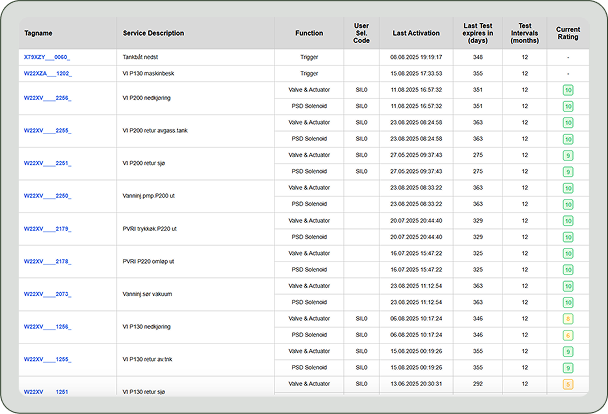 "SPAS has given us great insight into the reliability of the instrumented barriers. It makes it very easy to tackle "bad actors" and focus on them. We can also spend less time on manual work as SPAS gives us automatic confirmation of the status of the safety functions. SPAS supports us in having an overview of the status of the instrumented barriers at all times. This is in accordance with the regulations, ref. Management Regulations §5 Barriers: It must be known which barriers and barrier elements are out of function or are weakened."